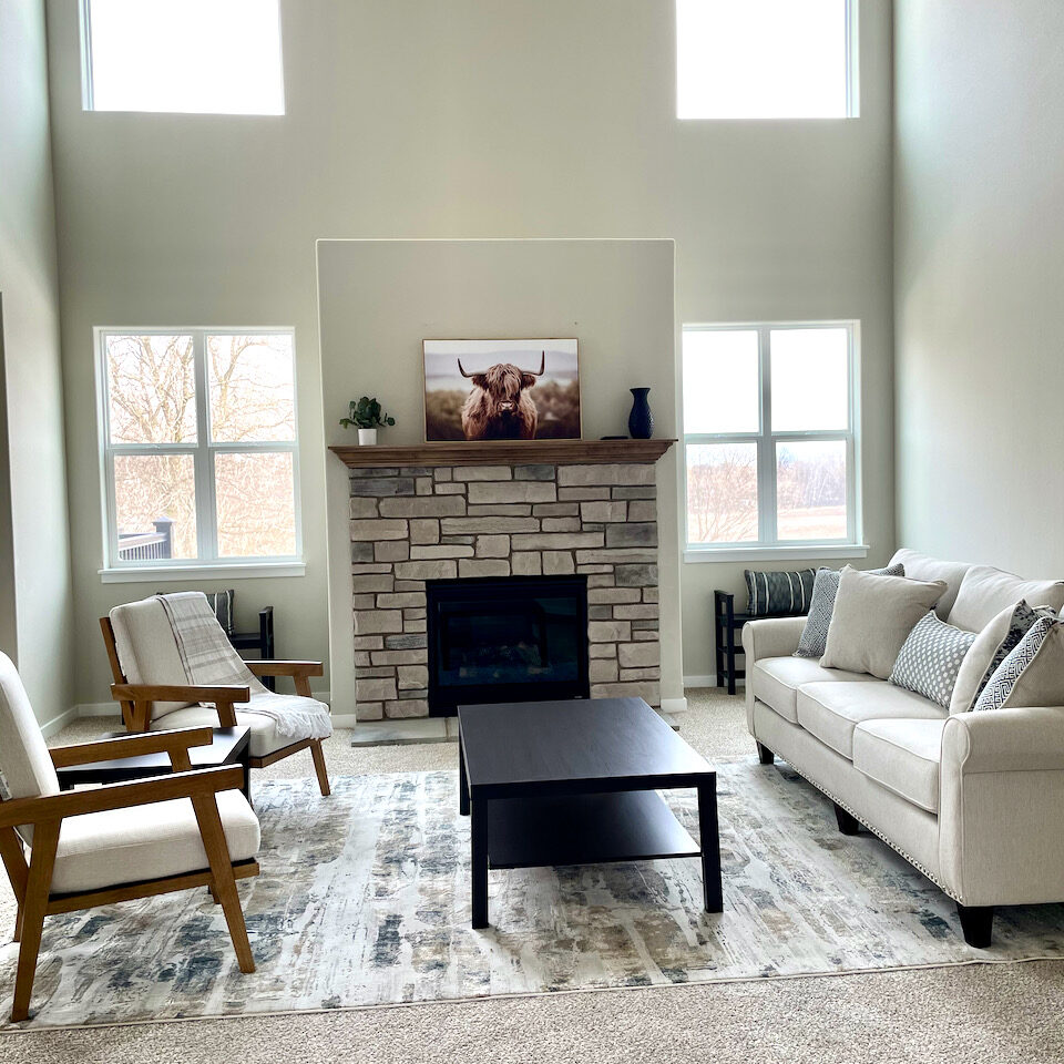 - Bright and airy open concept interior