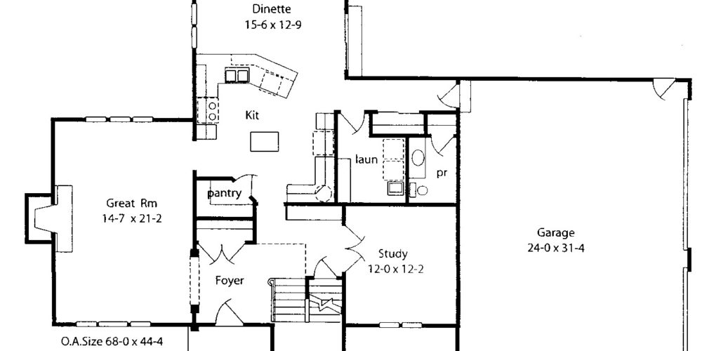 dimensions: 68′ wide x 44.4′ deep