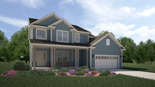 Our Imagine floor plan, a new home in our Evolution series, is one of our favorite floor plans because of the attention to detail throughout the home. The great room features a corner fireplace and two surrounding walls with an ample amount of natural light, leaving the home feeling open and fresh. The kitchen features a spacious square-working island, corner walk-in pantry, and a cabinet surround with more than enough storage! Imagine’s first floor also includes a powder room, flex room, and detailed niches throughout, making this home a blank canvas for your creativity. The second story includes the large master bedroom and bathroom, featuring a walk-in closet, dual vanity space, and tile shower. The additional three bedrooms, one of which including a walk-in closet, will be an ample amount of space for your kids or visiting guests!