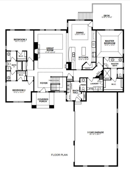 This split ranch features two other large bedrooms with a Jack and Jill bathroom to accommodate two users at once. The Langley has a large mudd room with three cubbies, seating area/drop zone, and a powder room.